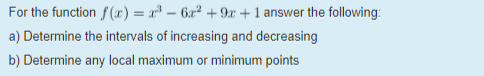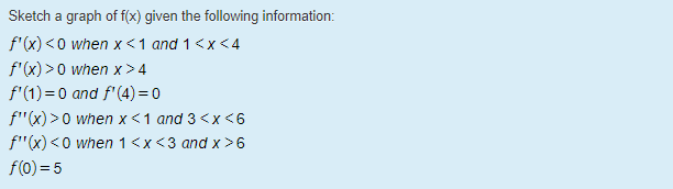 Sketch a graph of f(x) given the following information: f'(x) <...