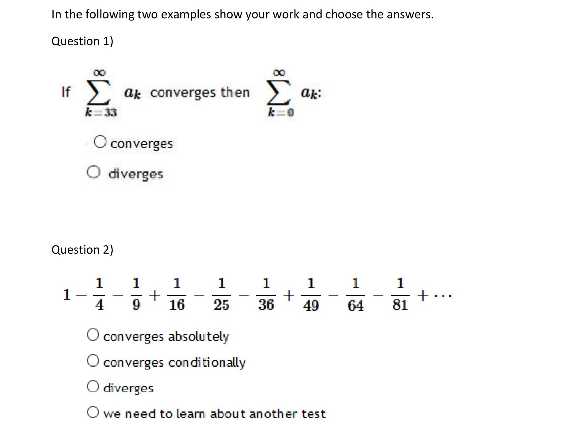 In the following two examples show your work and choose the answers...