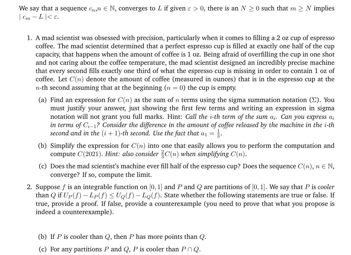 We say that a sequence Cn,n E N, converges to L if given E > 0,...