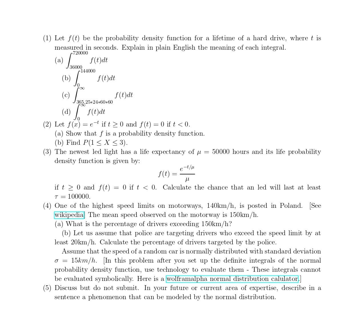 (1) Let f(t) be the probability density function for a lifetime of ...