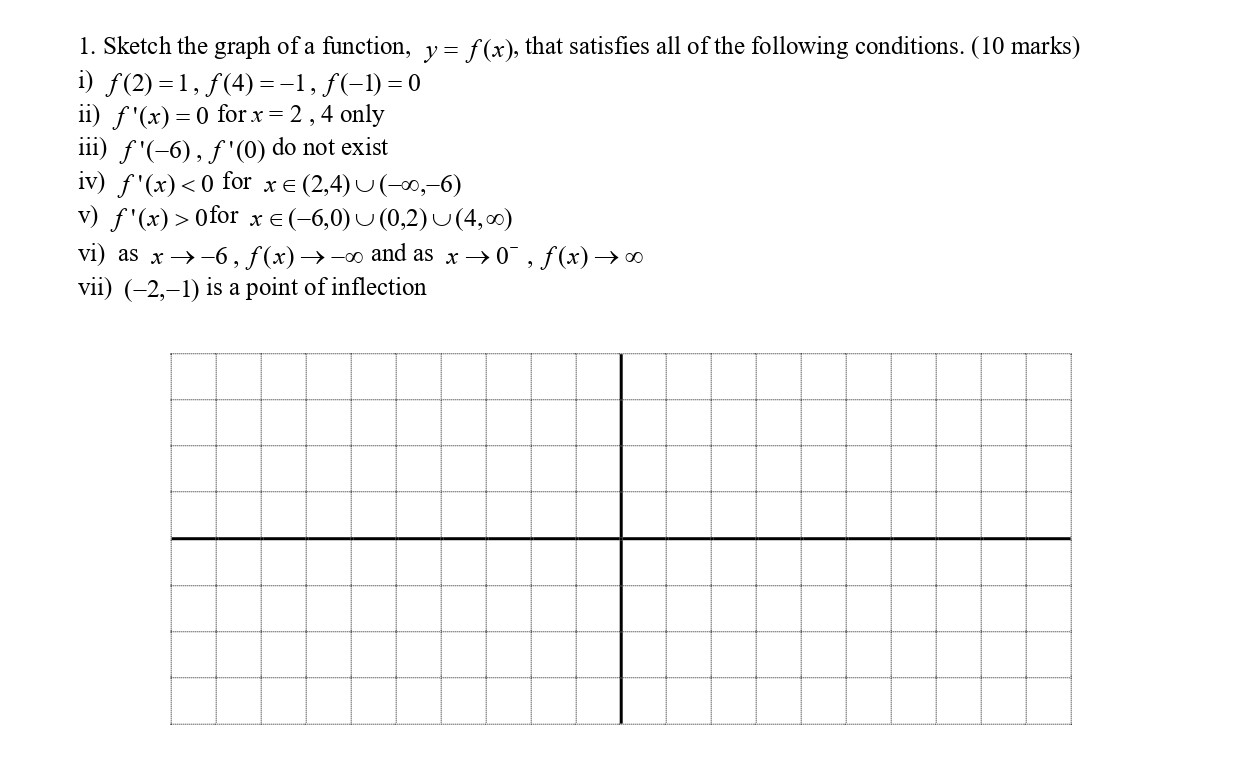 1. Sketch the graph of a function, y=f(x), that satisfies all of th...
