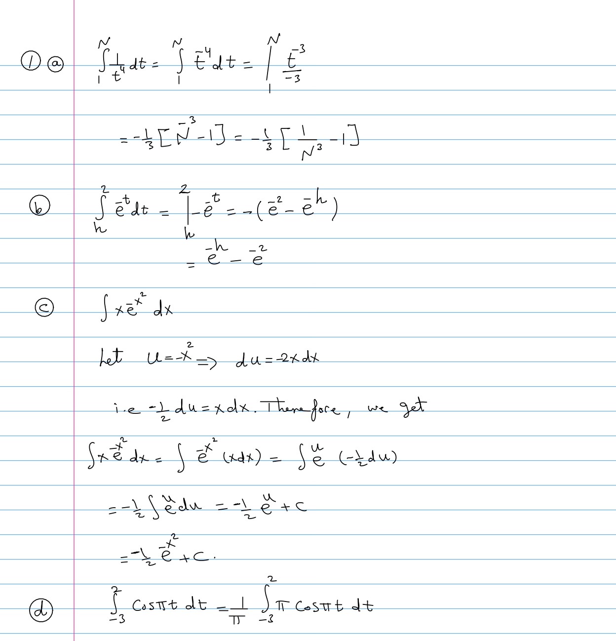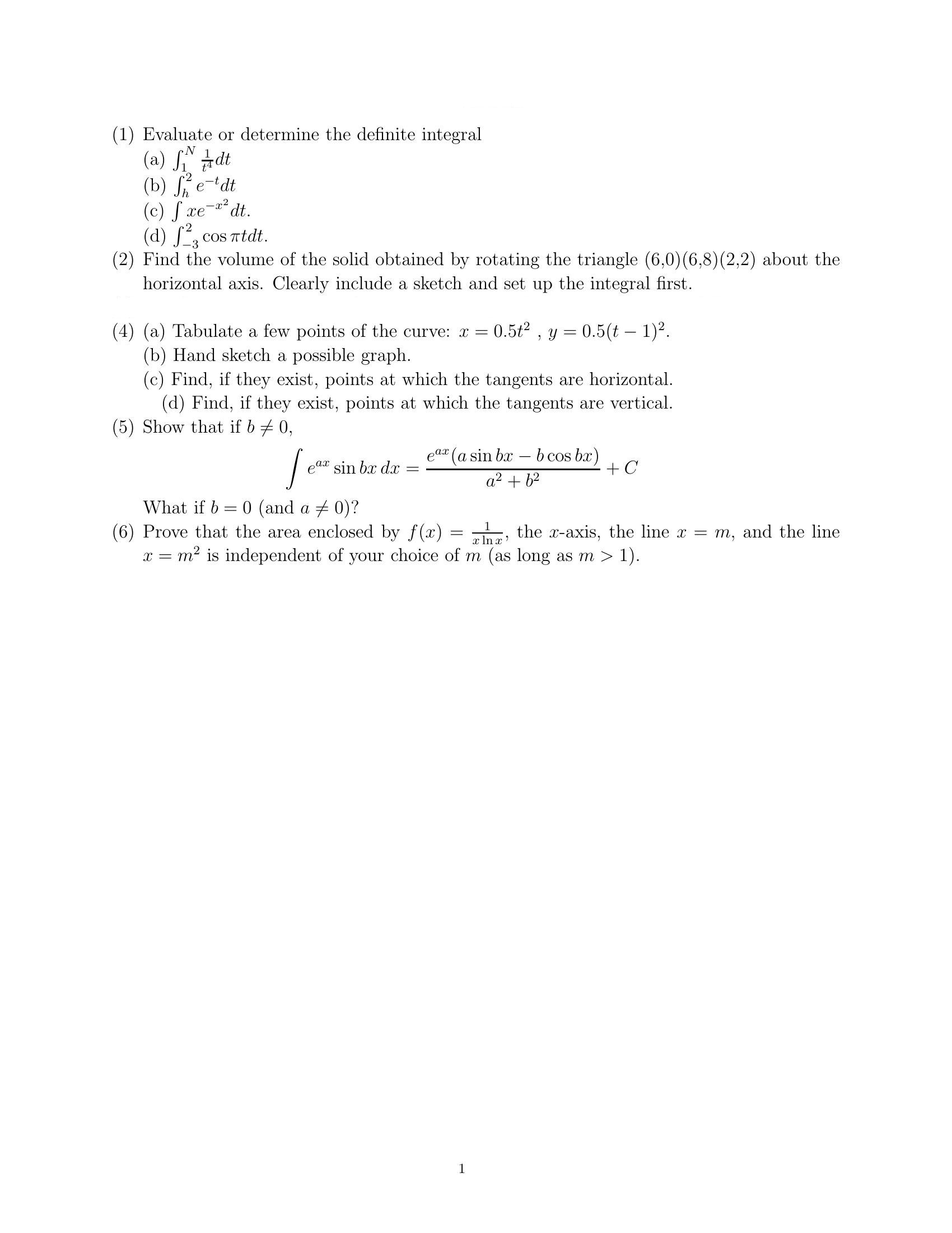 (1) Evaluate or determine the definite integral (a) (b) (c) (d)...
