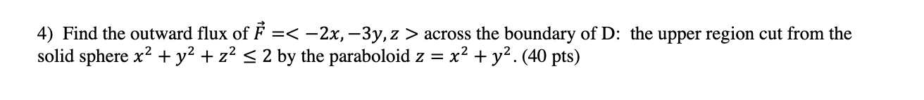 4) Find the outward flux of F 3y, Z > across the boundary of D: ...