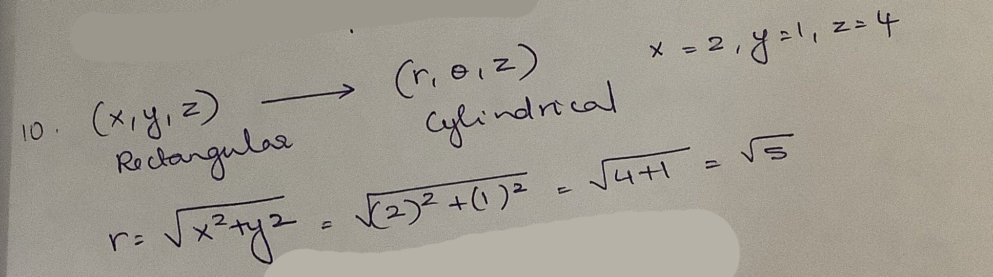 10. Given the rectangular coordinates (2,1,4) find the cylindrical ...