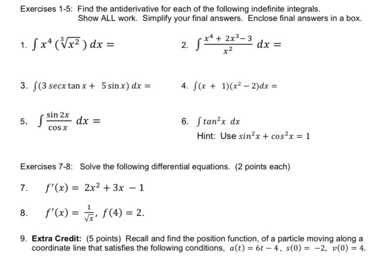 Exercises 1-5: Find the antiderivative for each of the following in...