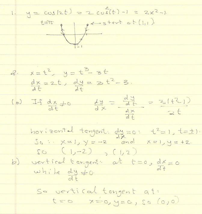 1. Sketch the parametric curve x = cost, y = cos(2t) (0 < t ≤...