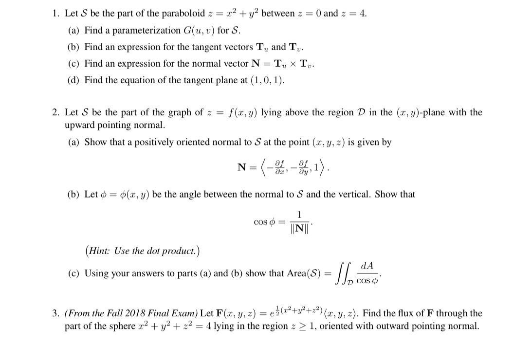 1. Let S be the part of the paraboloid z=x2+y2 = between Z = 0 and ...