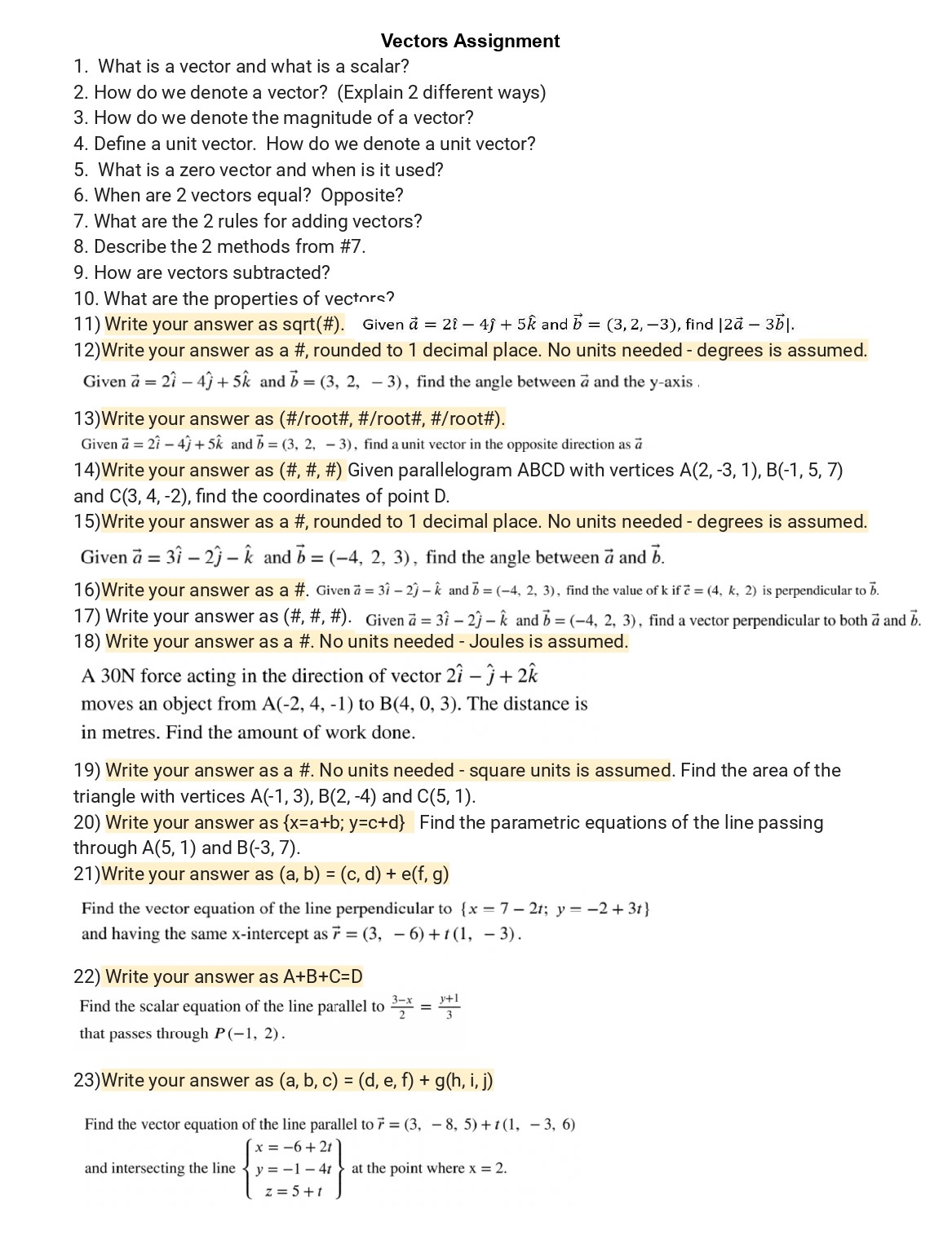 Vectors Assignment 1. What is a vector and what is a scalar? 2. H...