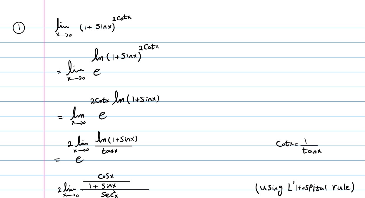 Question #1 Evaluate exactly lim (1 + sinx)2cotx x->1 0 Quest...