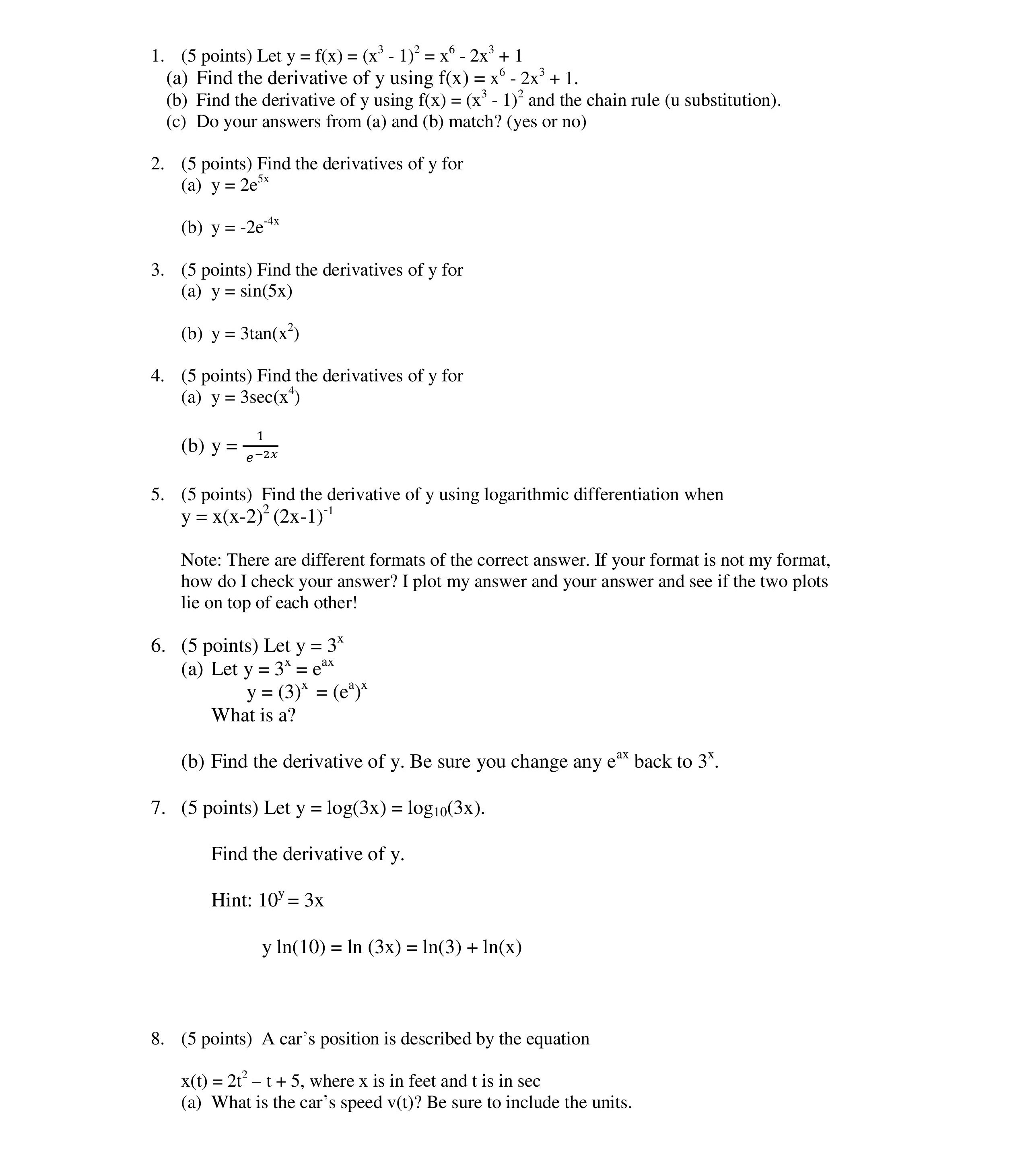 1. (5 points) = = - (a) Find the derivative of y using f(x) = x 6 ...