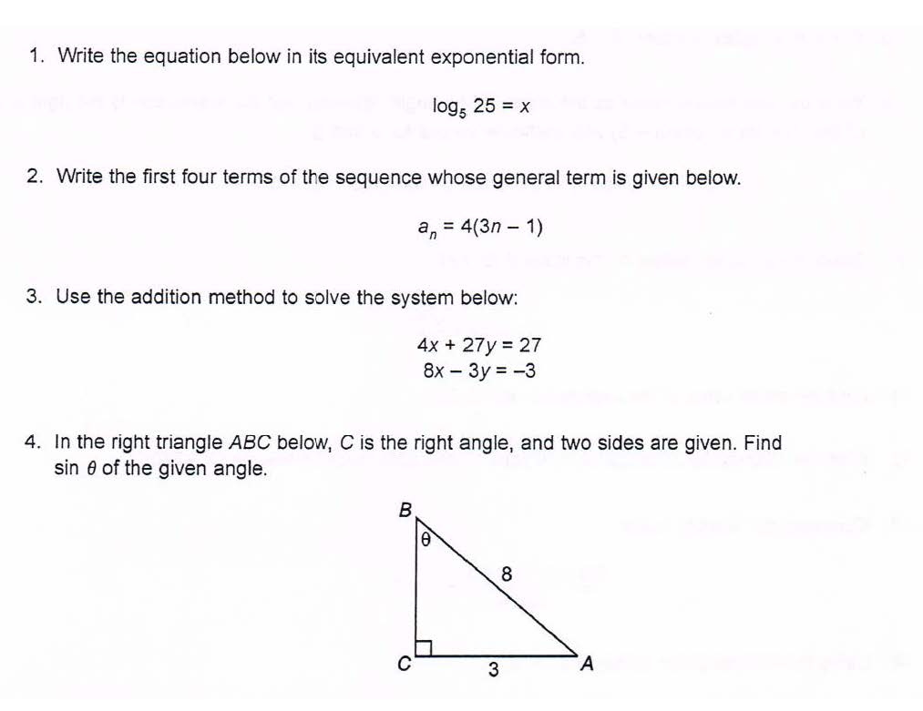 1. Write the equation below in its equivalent exponential form. lo...