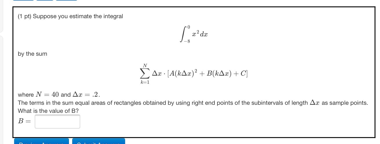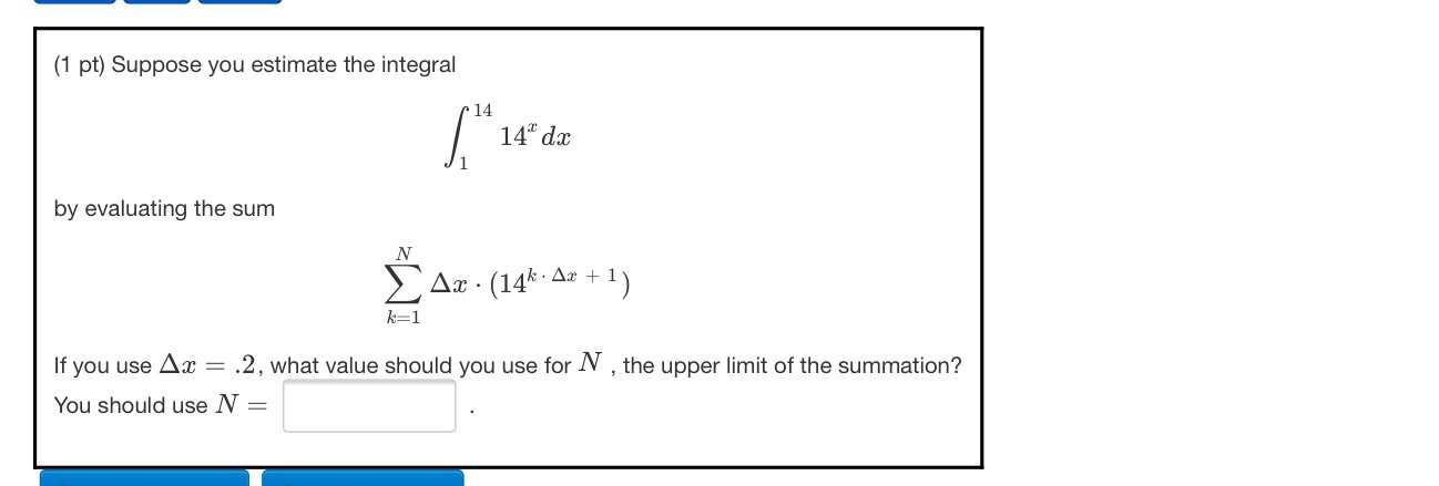 (1 pt) Suppose you estimate the integral 14 14² da 1 by evalua...