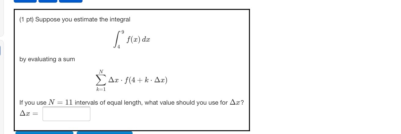 (1 pt) Suppose you estimate the integral 14 14² da 1 by eval...