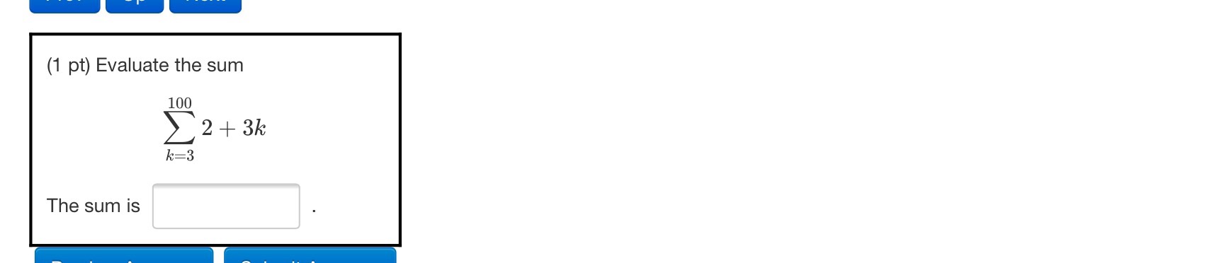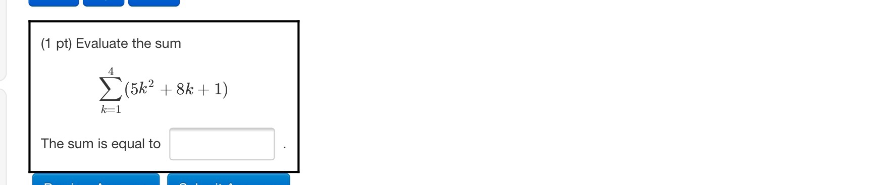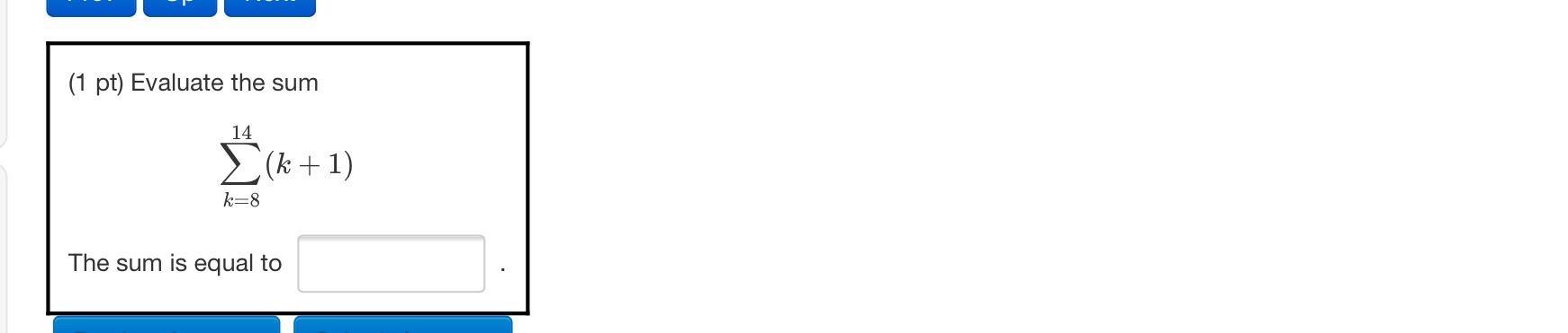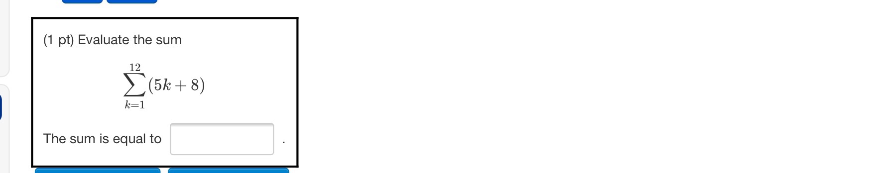 (1 pt) Evaluate the sum 12 (5k + 8) k=1 The sum is equal to - ...