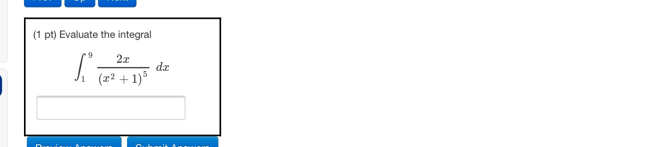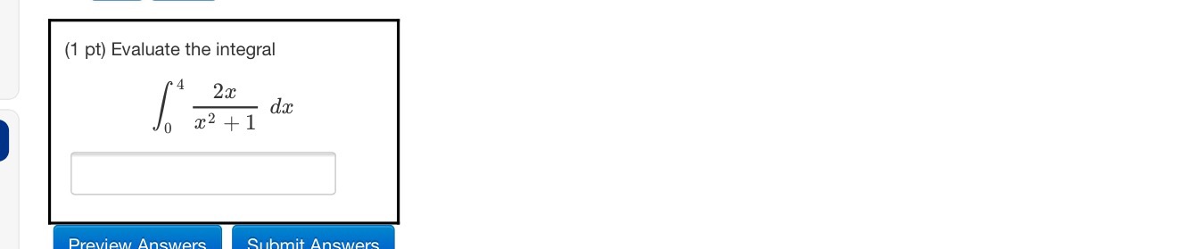 (1 pt) Evaluate the integral 0 4 xc 2 2.c + 1 da Preview Answers ...