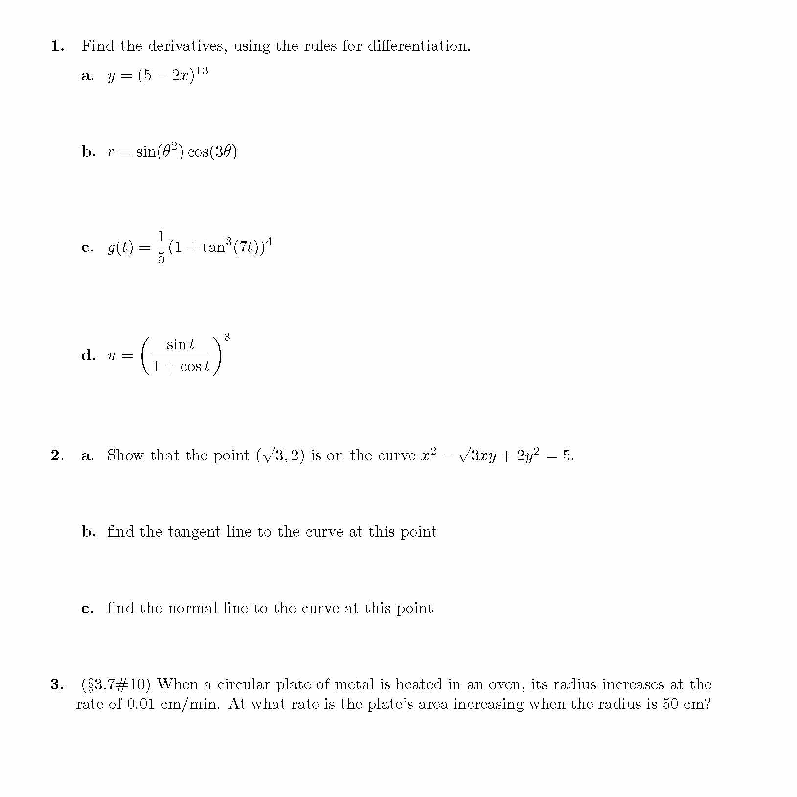 1. Find the derivatives, using the rules for differentiation. a. y...