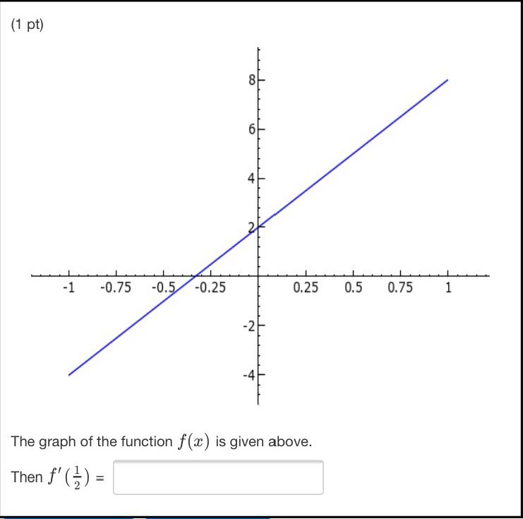 (1 pt) 8 6 4 2 -1 -0.75 -0.5, -0.25 0.25 0.5 0.75 1 -2 ...