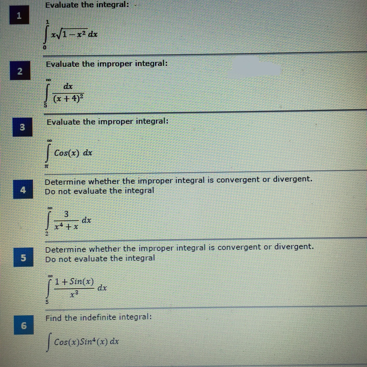 Evaluate the integral: 1 1 - dx Evaluate the improper integral:...