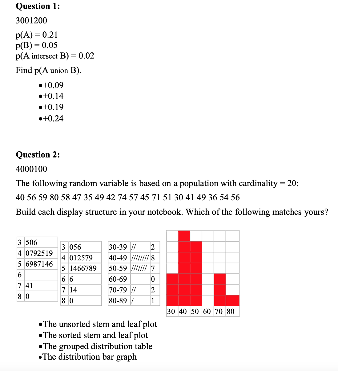 Question 1: 3001200 p(A) = 0.21 p(B) = 0.05 p(A intersect B) = ...