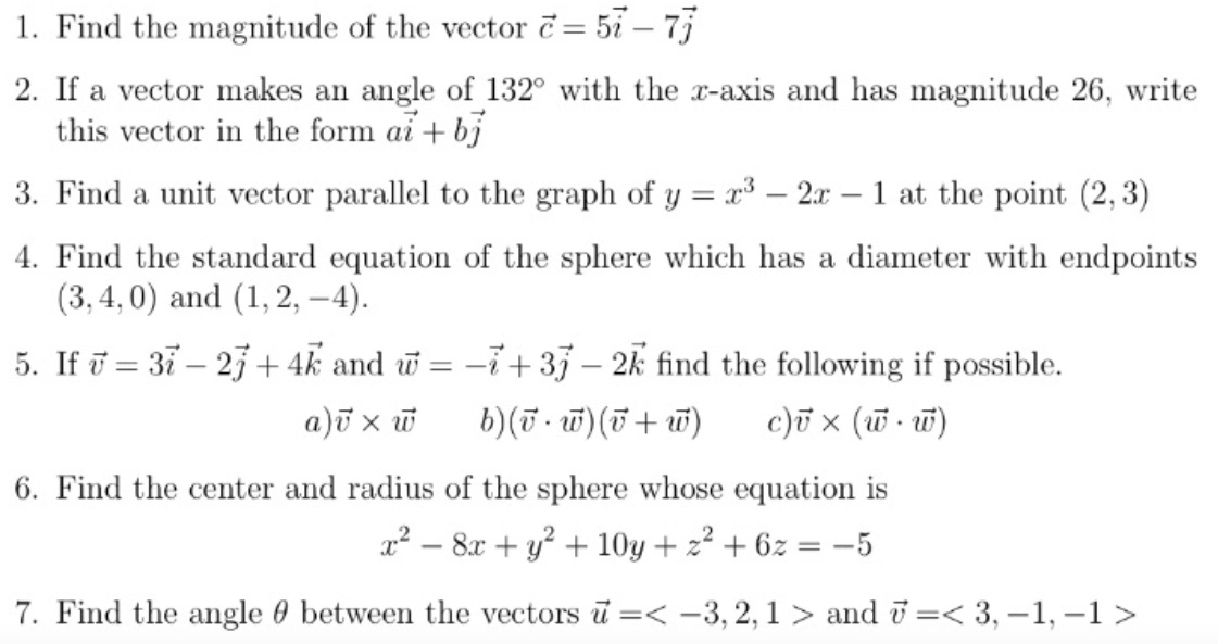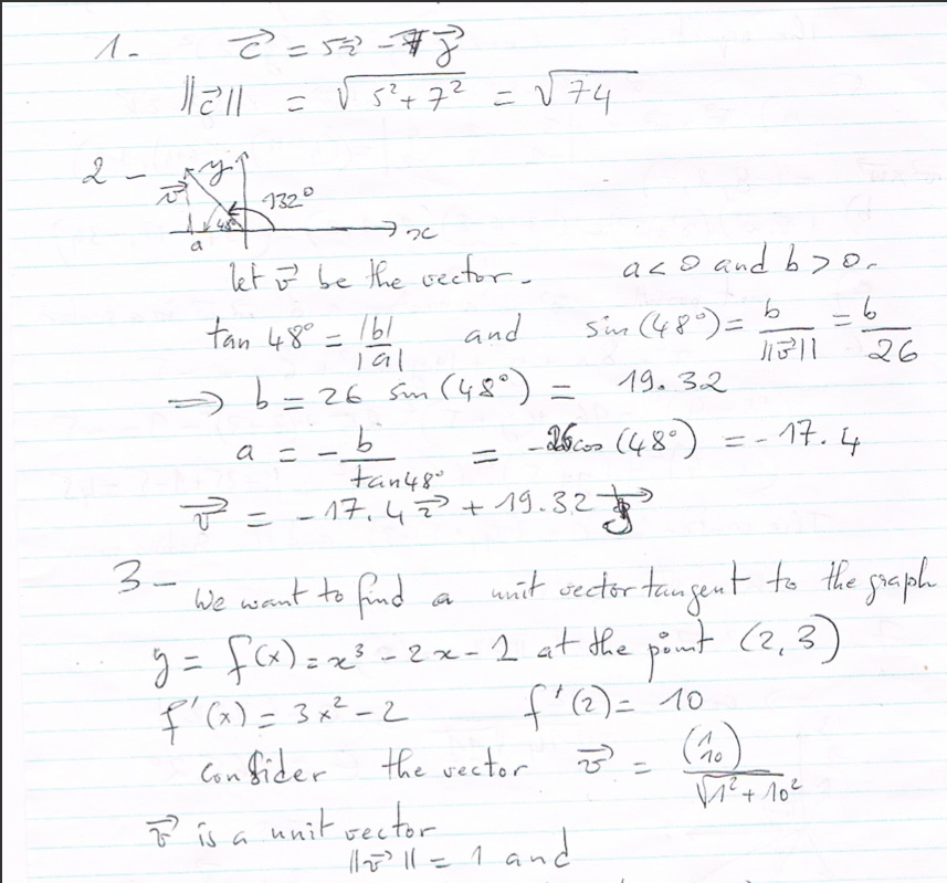 1. Find the magnitude of the vector c = 5i - 7j 2. If a vector mak...