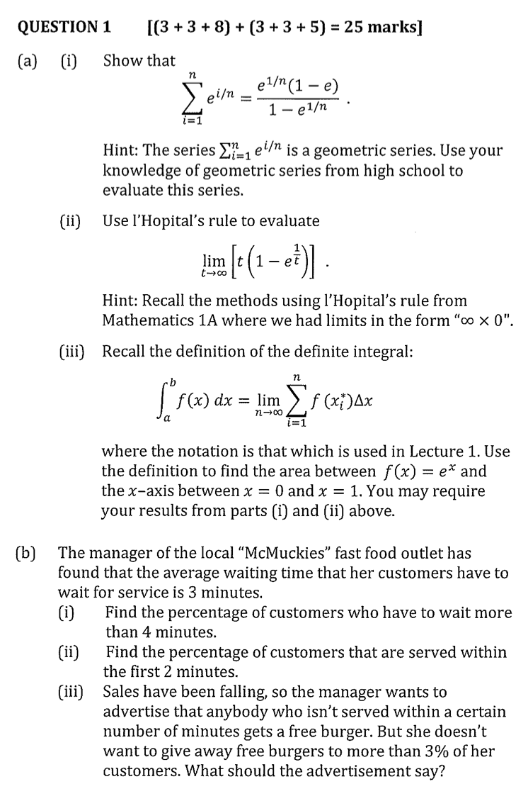QUESTION 1 [(3+3+8)+(3+3+5)=25marks] (a) (i) Show that . Hint: ...