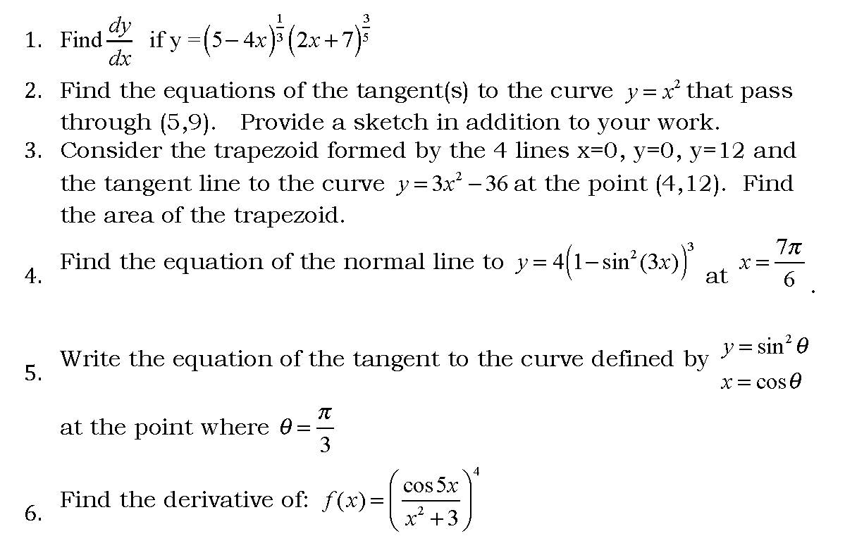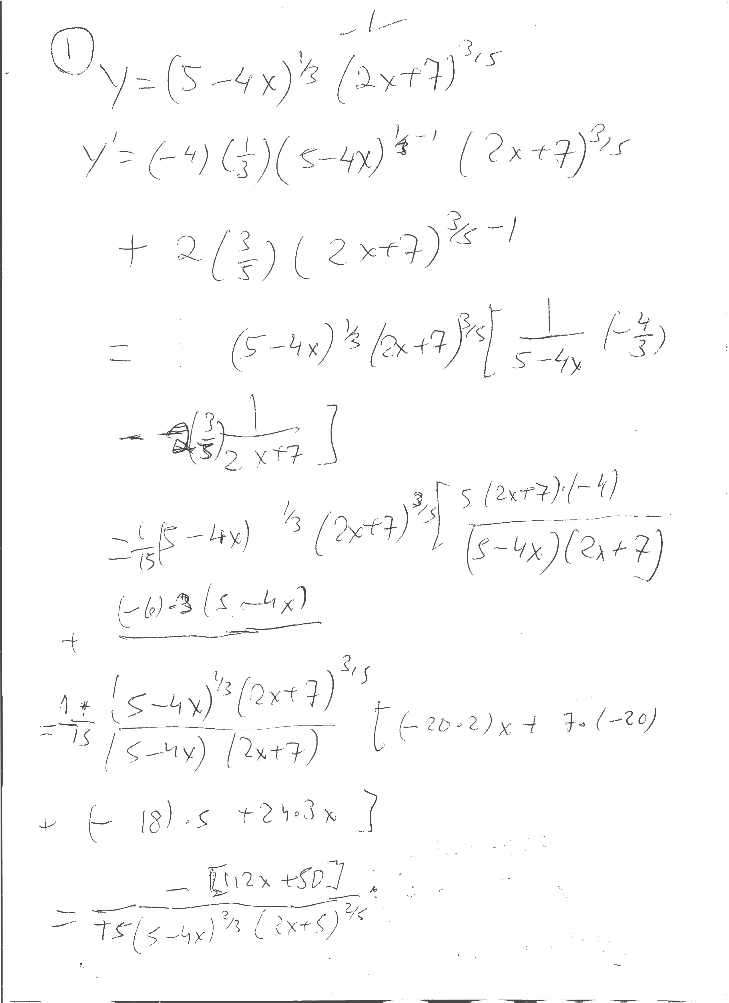 1. Find dy dx if y =(5− 4x) 1 3 (2x + 7) 3 5 2. Find the eq...