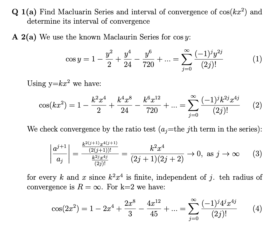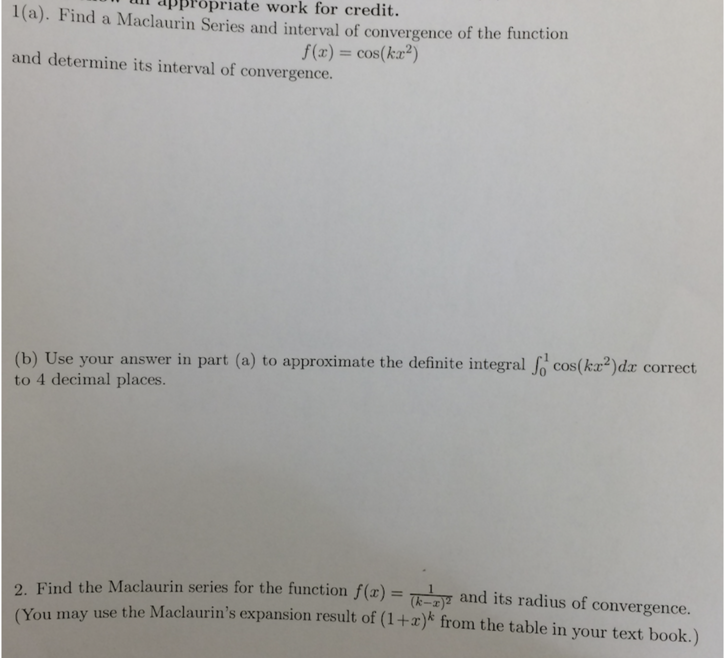 appropriate work for credit. 1 (a). Find a Maclaurin Series and in...