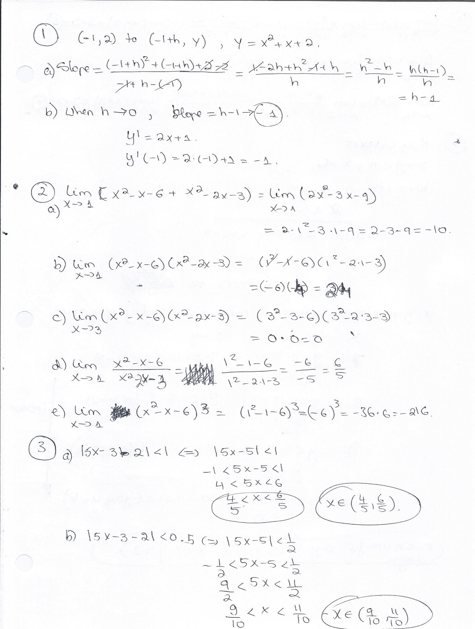 1. What is the slope of the line y = x2 + x + 2 through (−1, 2)...