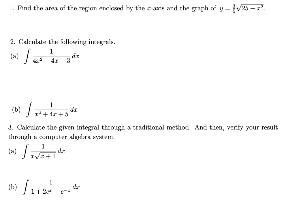 1. Find the area of the region enclosed by the x-axis and the graph...
