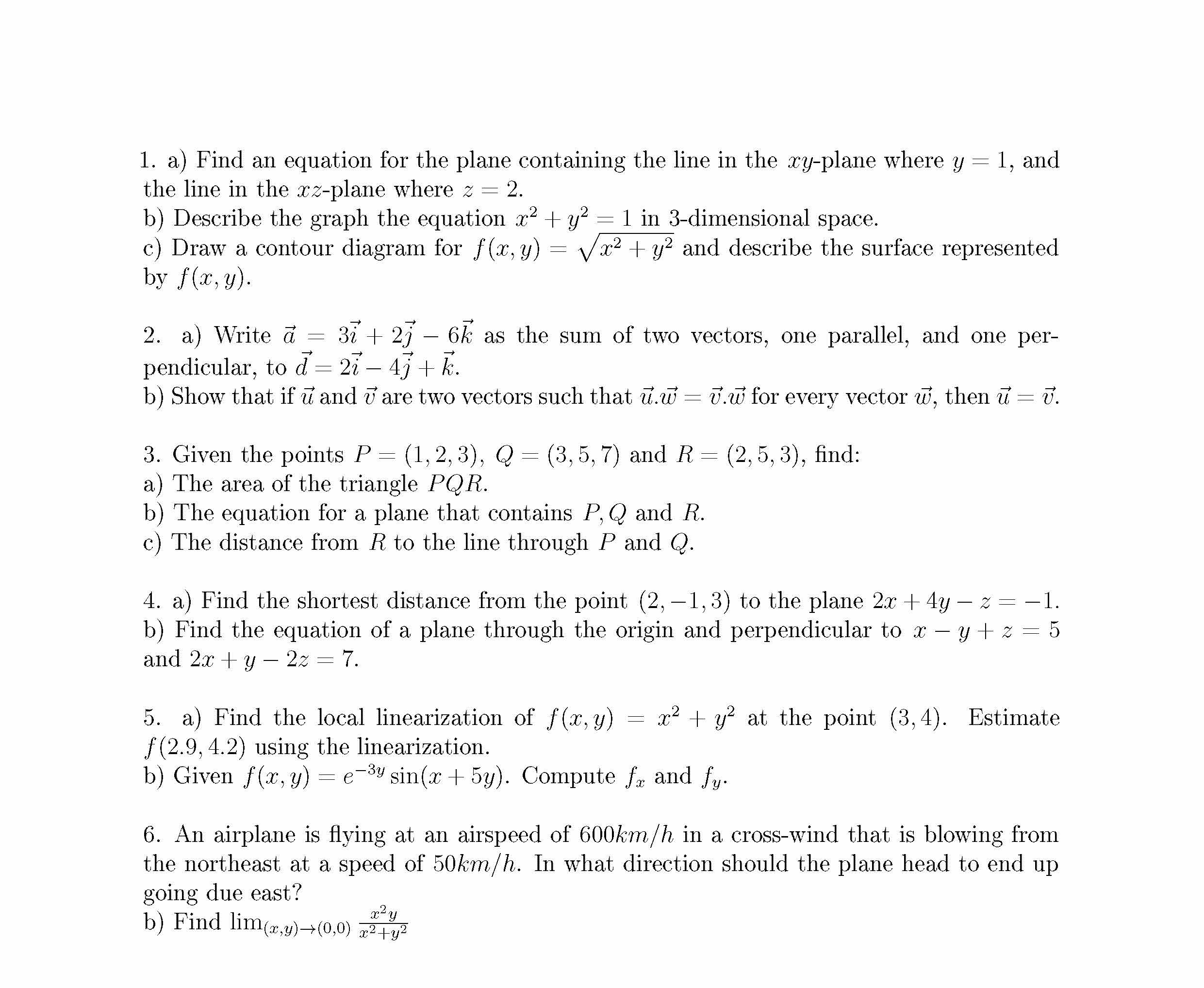 1. a) Find an equation for the plane containing the line in the xy-...