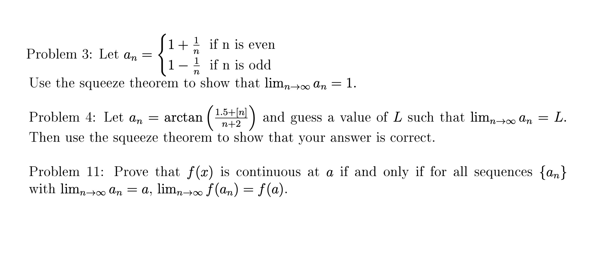 Problem 3: Let an = ( 1 + 1 n if n is even 1 − 1 n if n i...