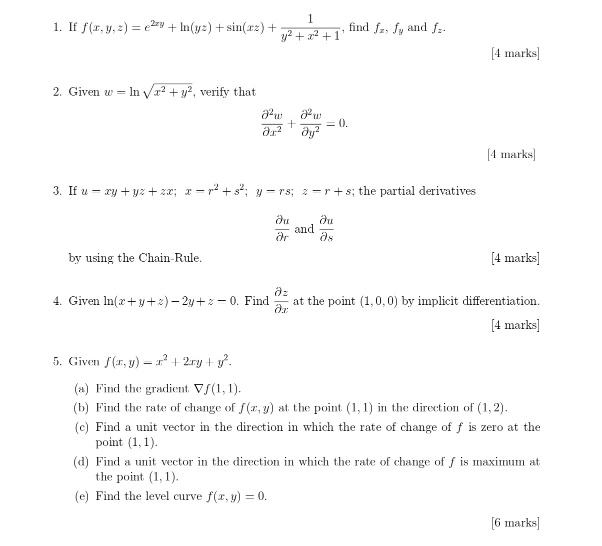 fa 1. If and fz. [4 marks] 2. Given W = verify that [4 marks] 3...