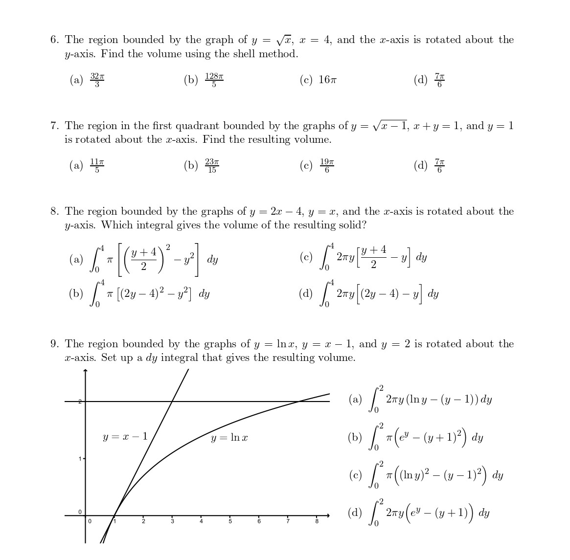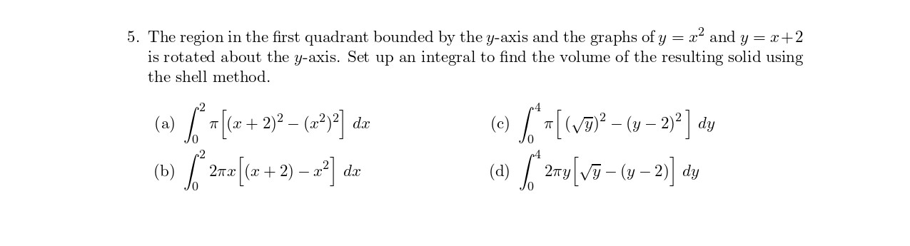 5. The region in the first quadrant bounded by the y-axis and the g...
