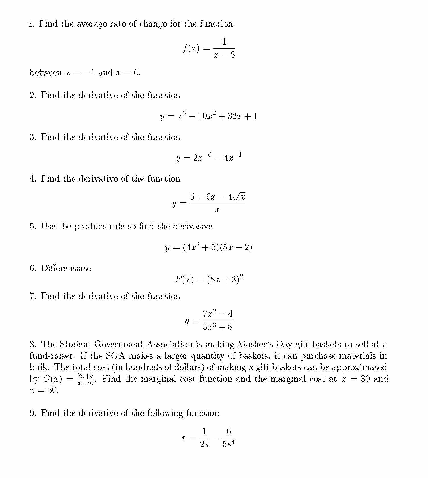 1. Find the average rate of change for the function. 5(2)==21 = r...