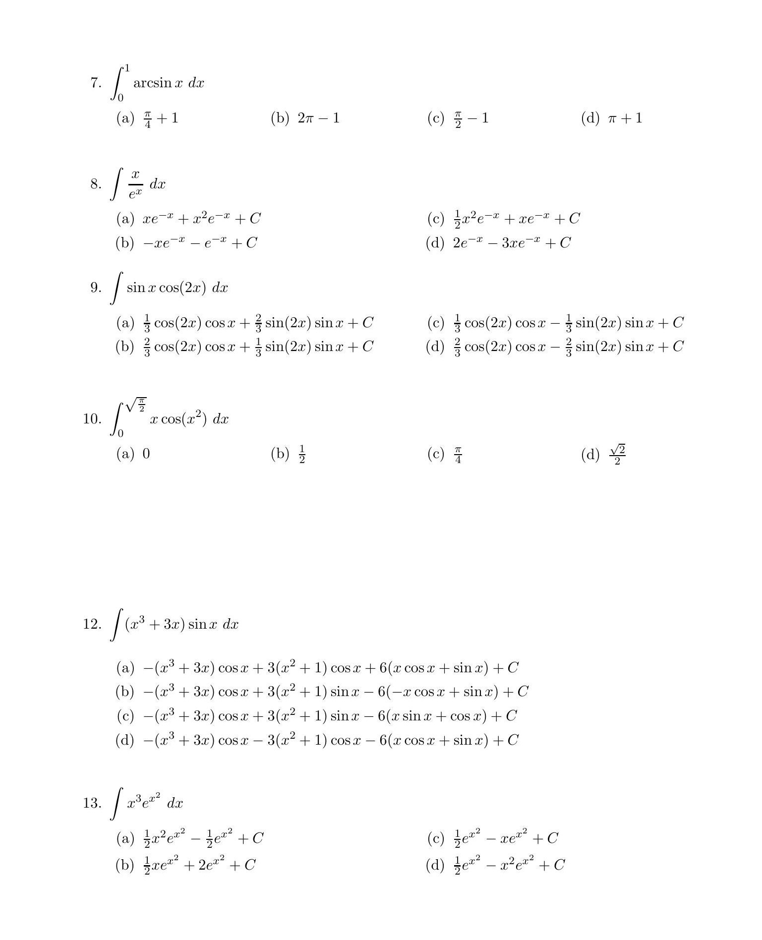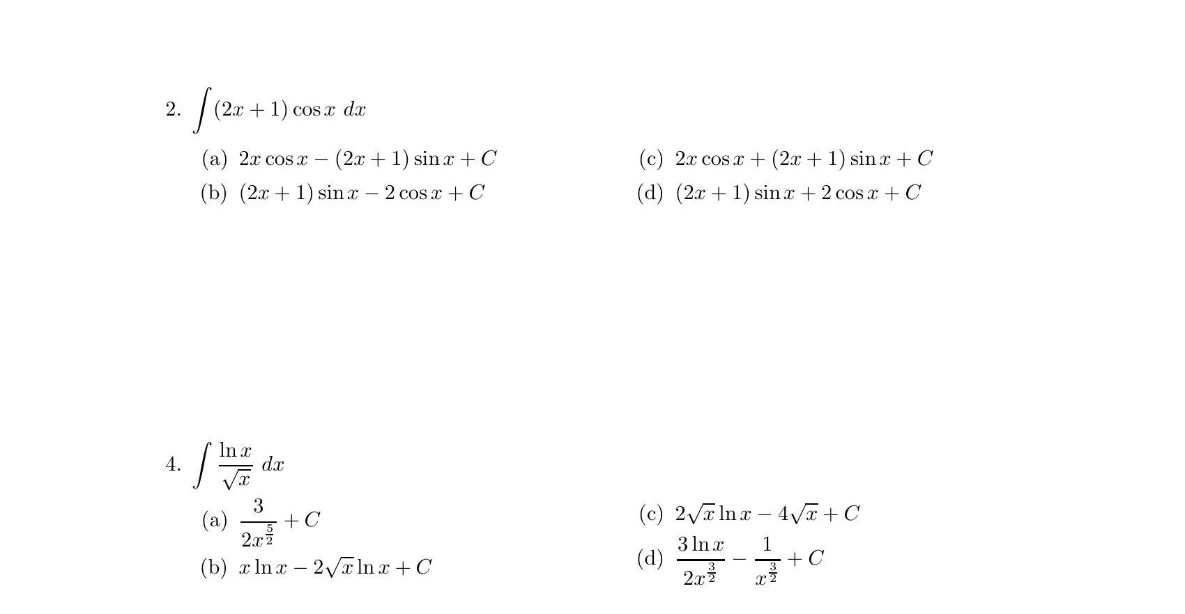 2. (a) 2x - sin x +C (c) 2x + C (b) (2x+1)sin-2cC - (d) (2x +1)...