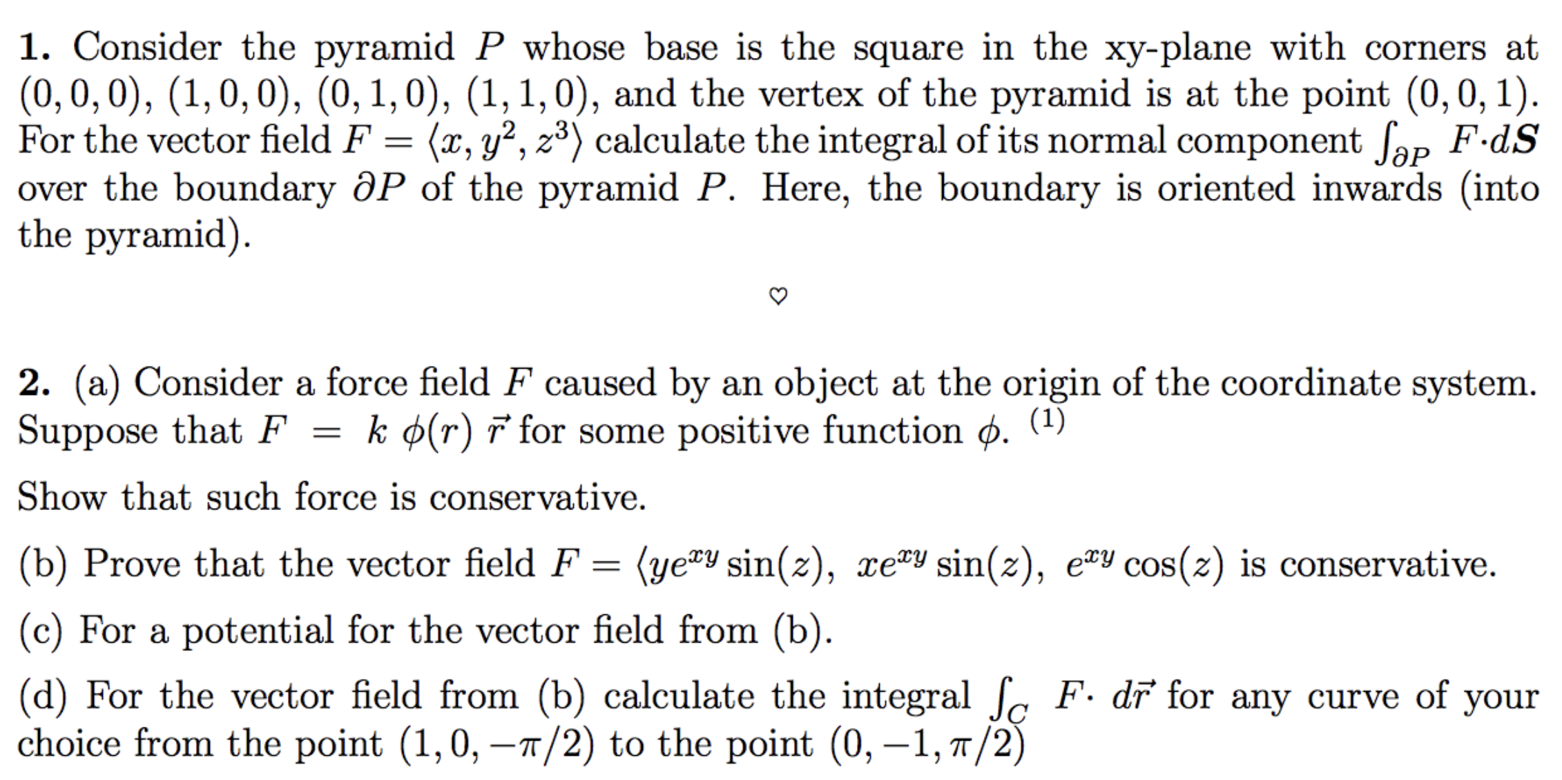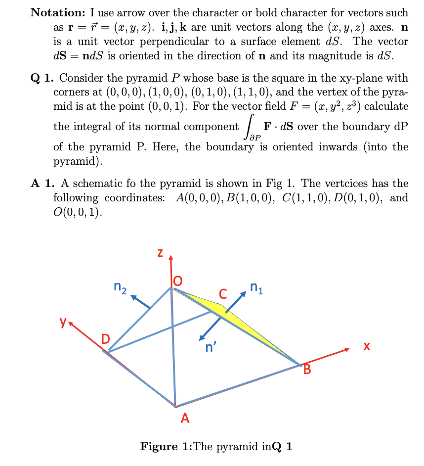 1. Consider the pyramid P whose base is the square in the xy-plane...
