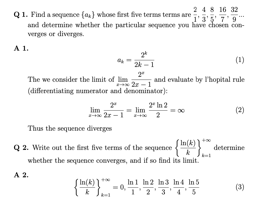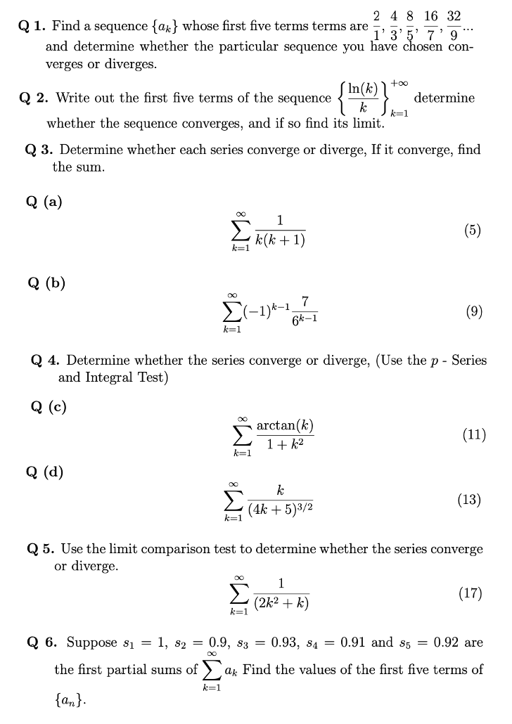 Q1. Find a sequence {ak} whose first five terms terms are 1'3'5' 7...