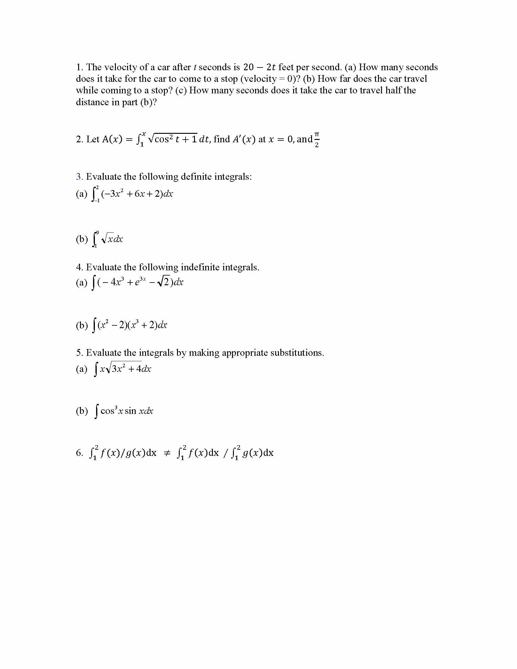 1. The velocity of a car after t seconds is 20 2t feet per second....
