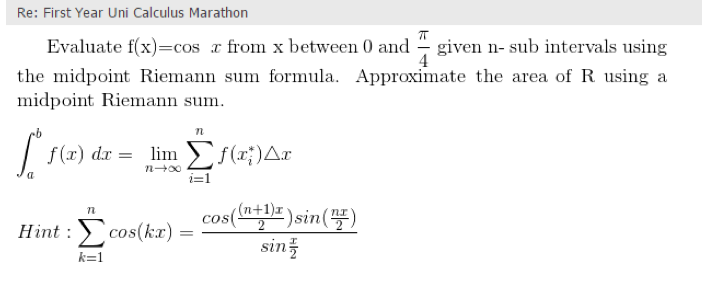 Re: First Year Uni Calculus Marathon Evaluate f(x)=cos x from X be...