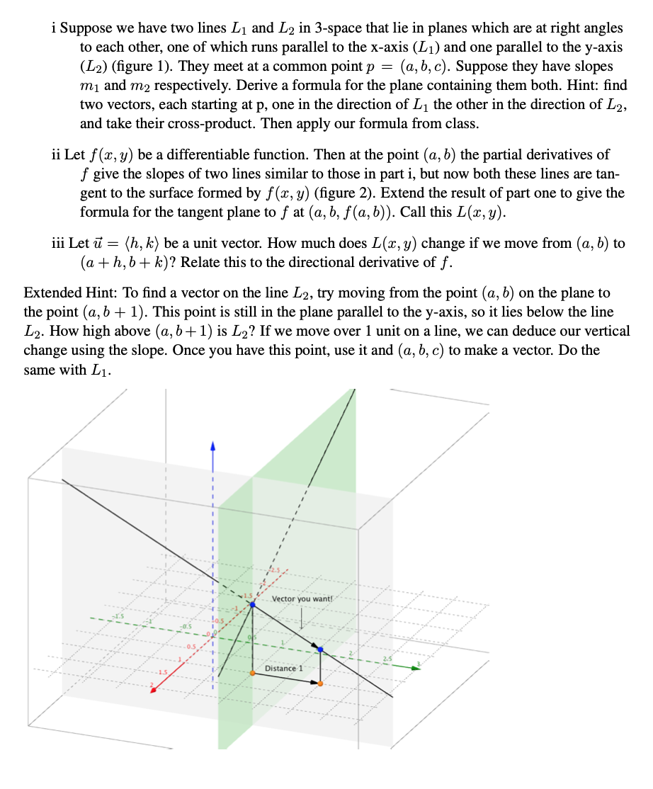 i Suppose we have two lines L1 and L2 in 3-space that lie in planes...