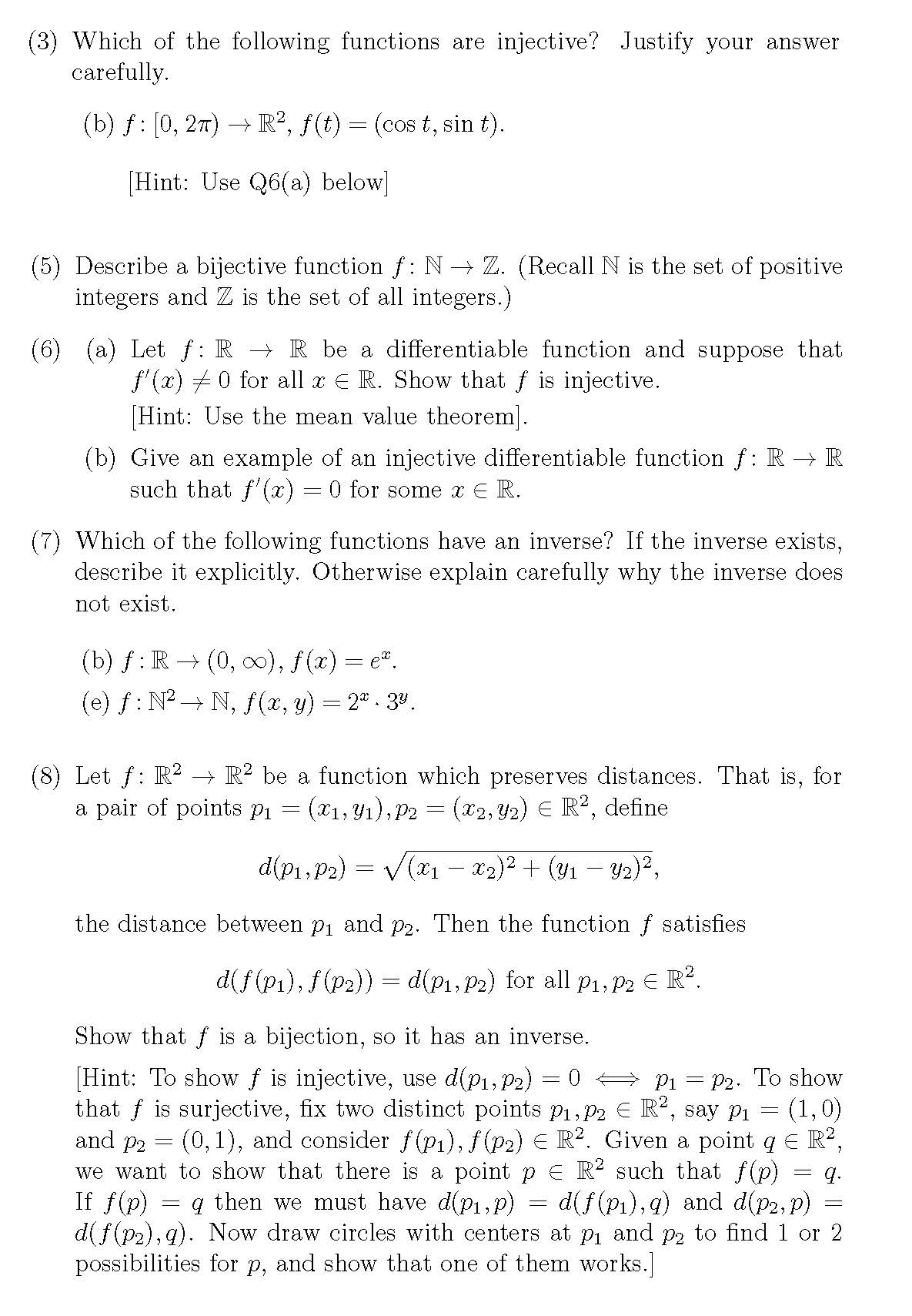 (3) Which of the following functions are injective? Justify your an...