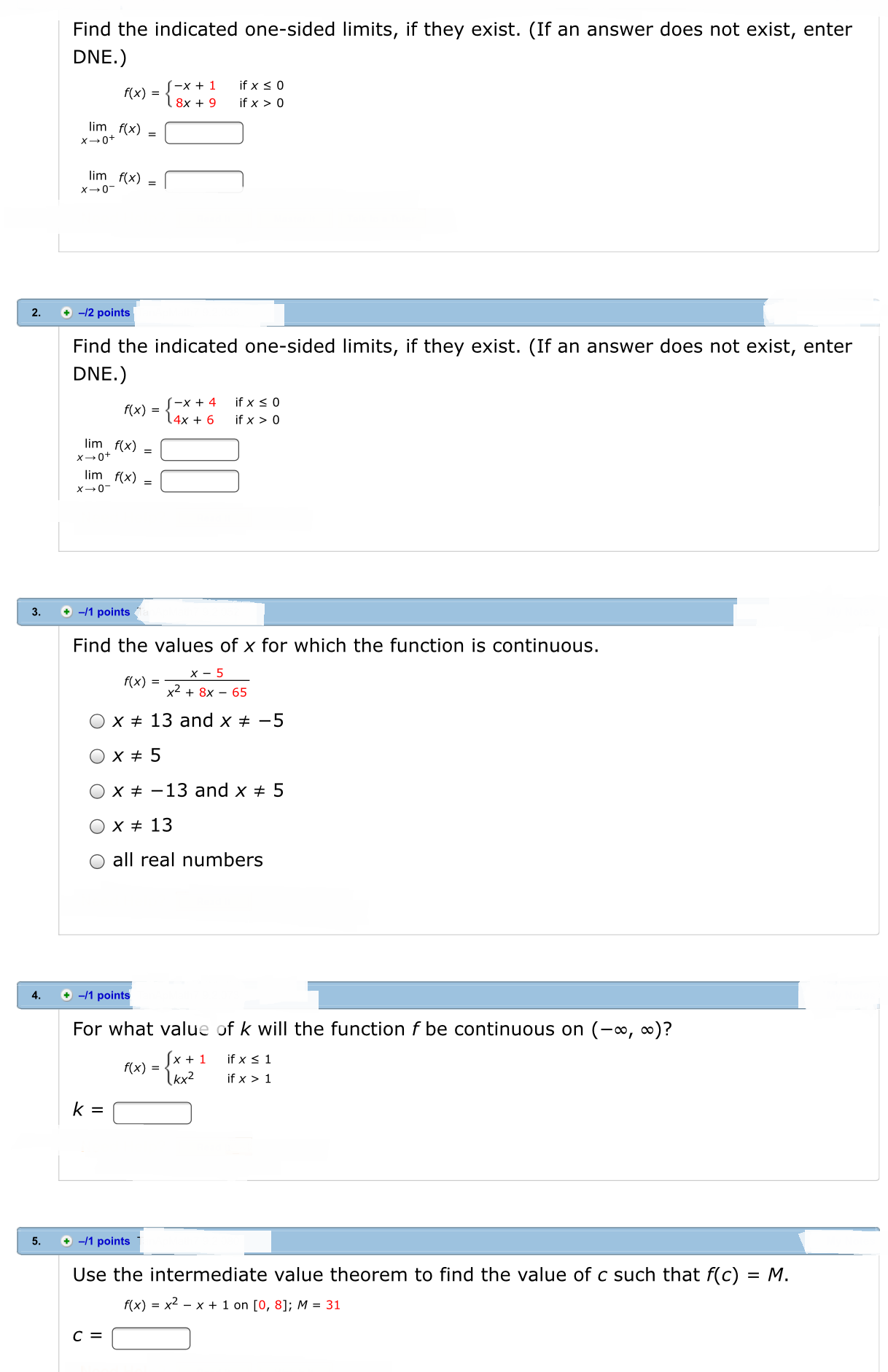 . Find the indicated one-sided limits, if they exist. (If an answer...