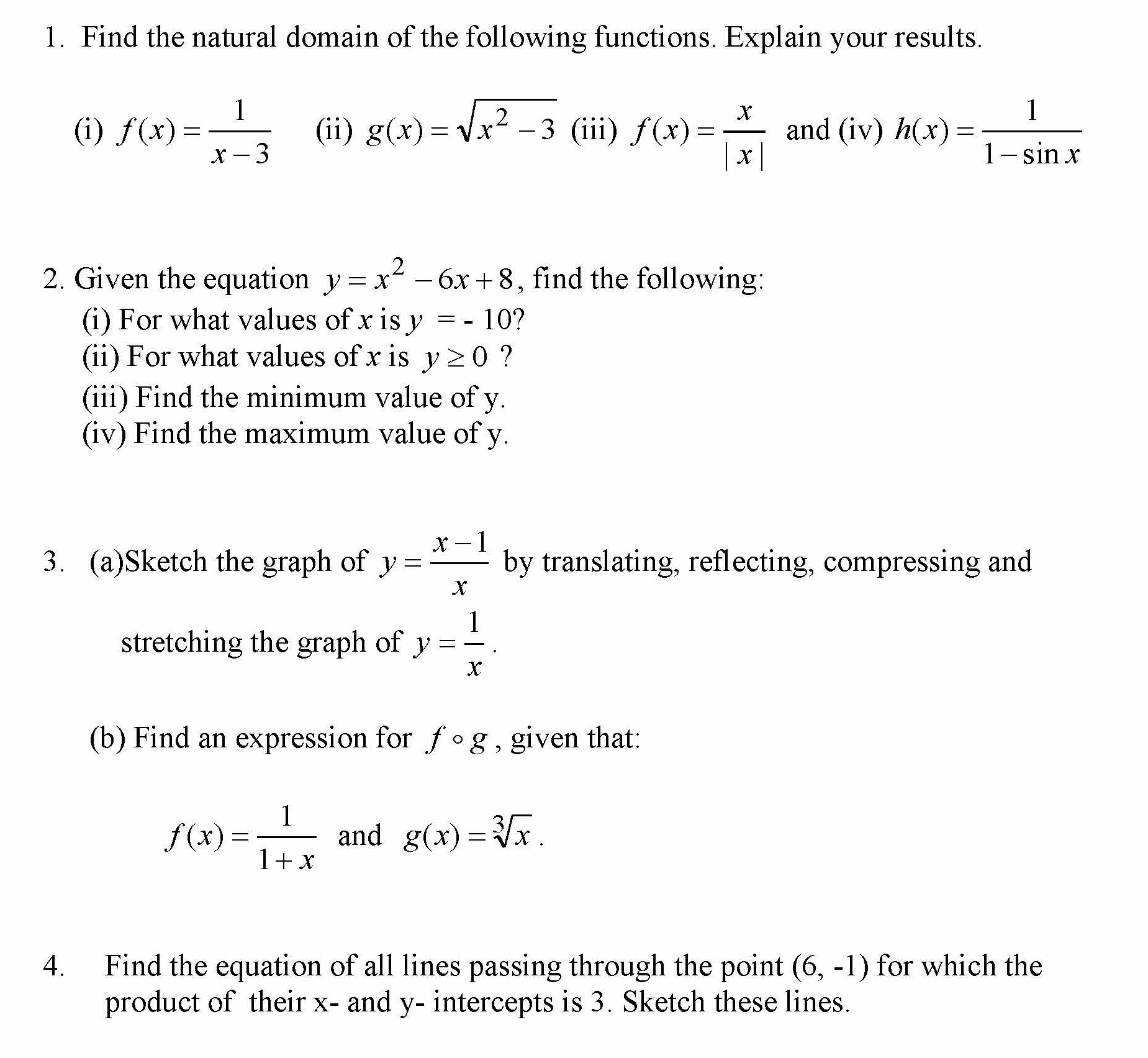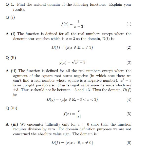 1. Find the natural domain of the following functions. Explain your...