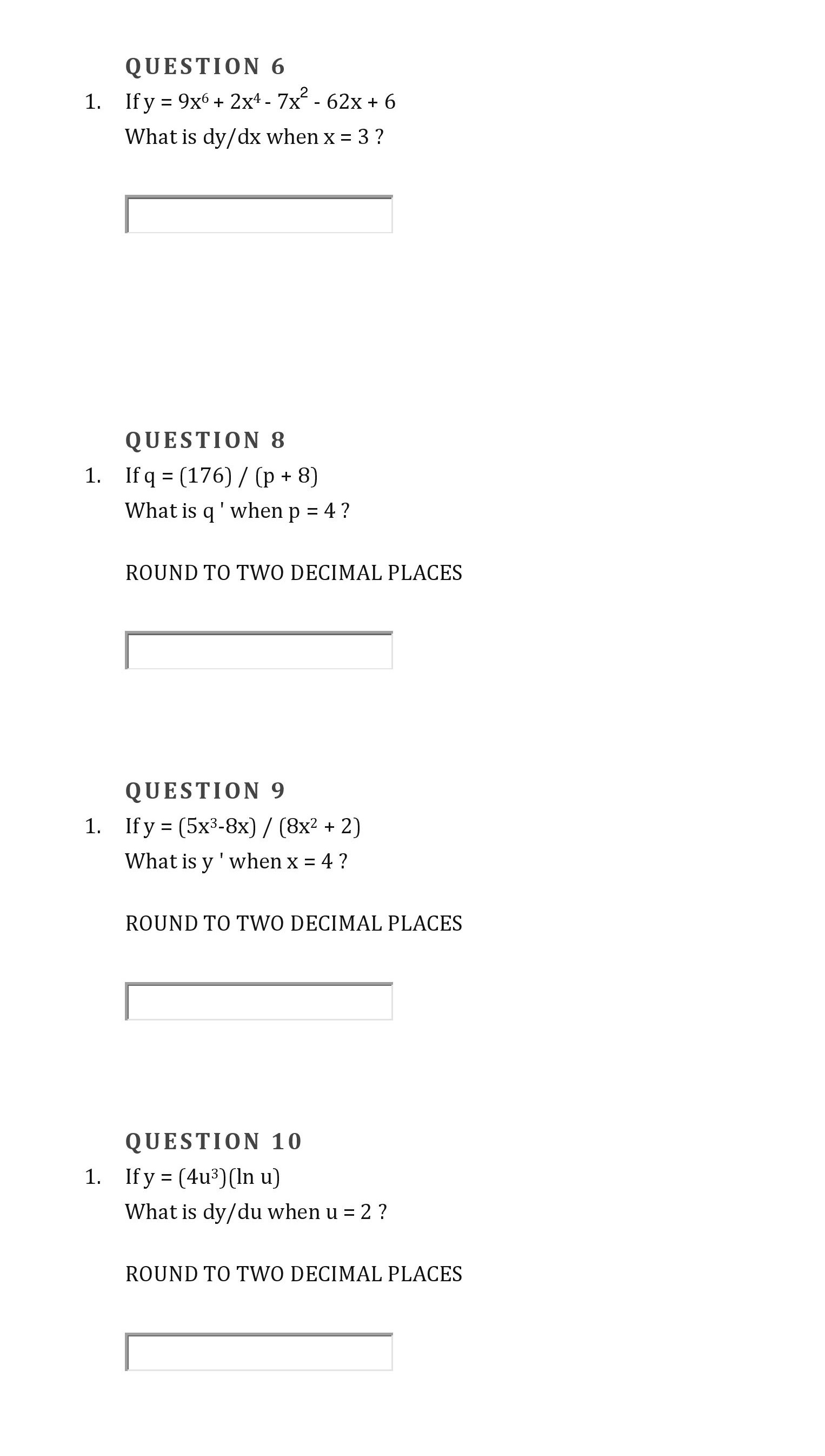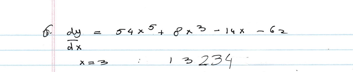 . QUESTION 6 1. If y = 9x6 + 2x4 - 7x2 - 62x + 6 What is dy/dx wh...
