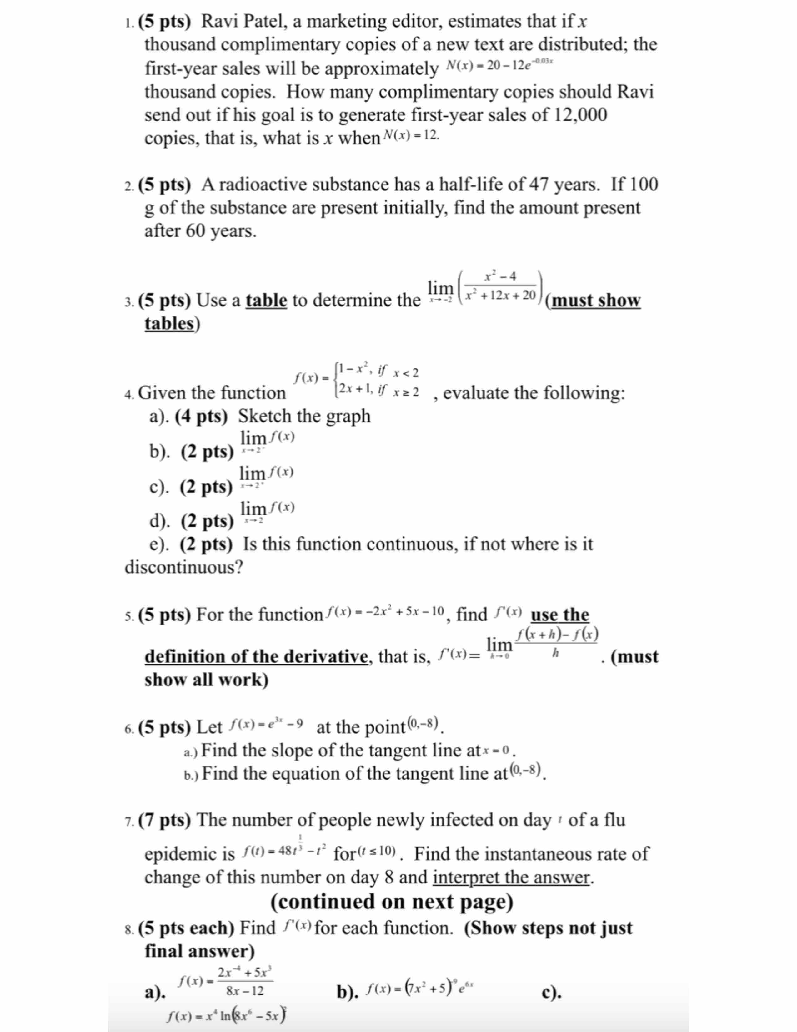 1. (5 pts) Ravi Patel, a marketing editor, estimates that if x tho...