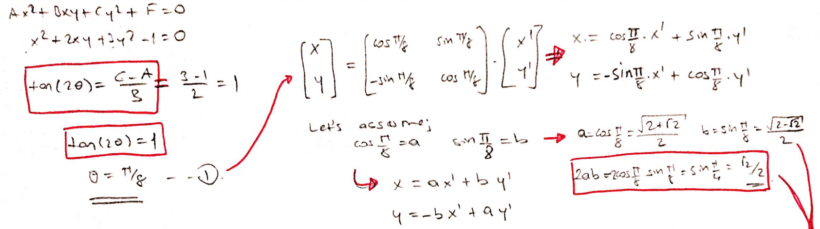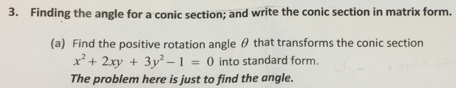 3. Finding the angle for a conic section; and write the conic se...
