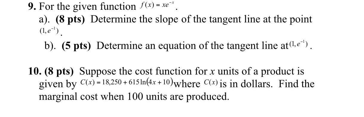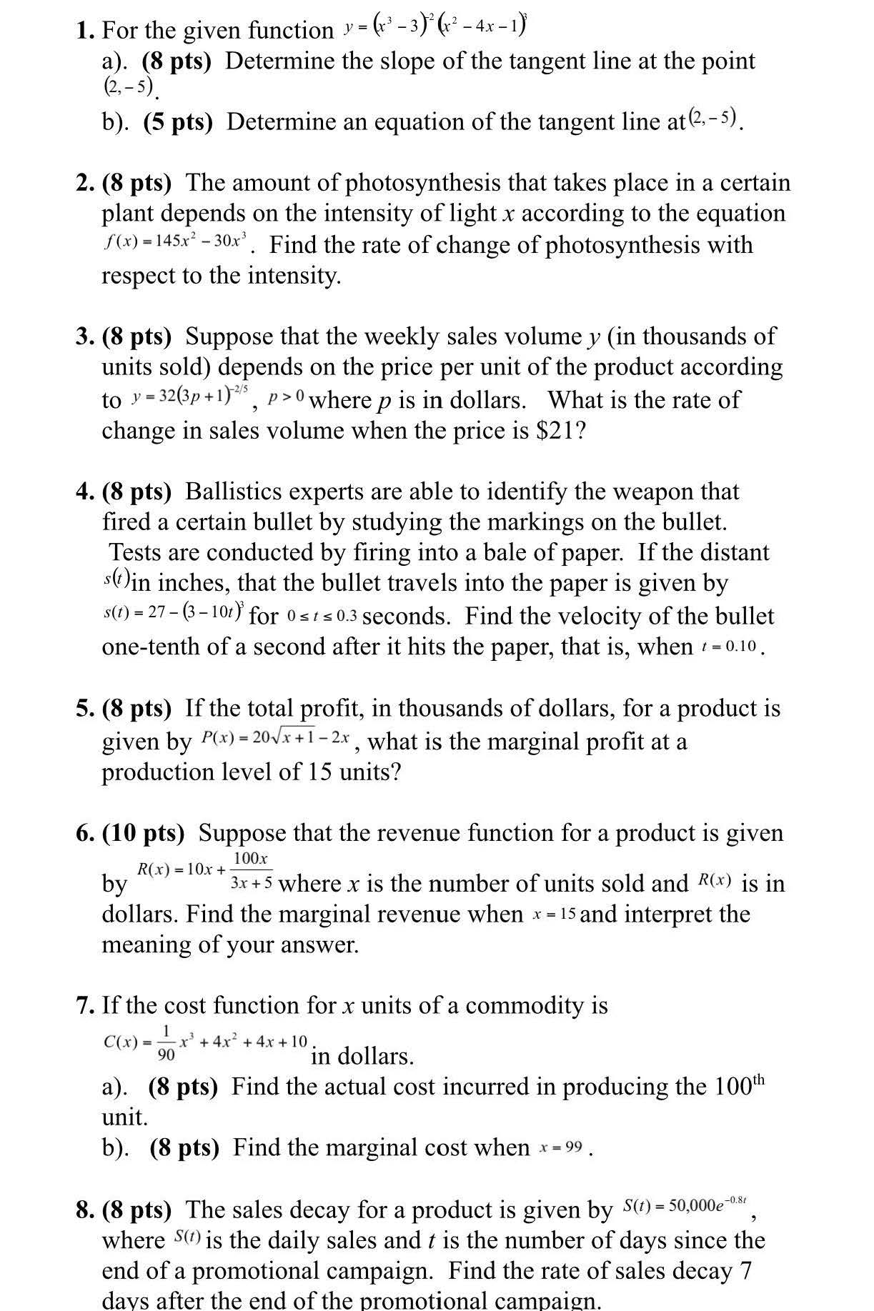 1. For the given function y= - a). (8 pts) Determine the slope of ...