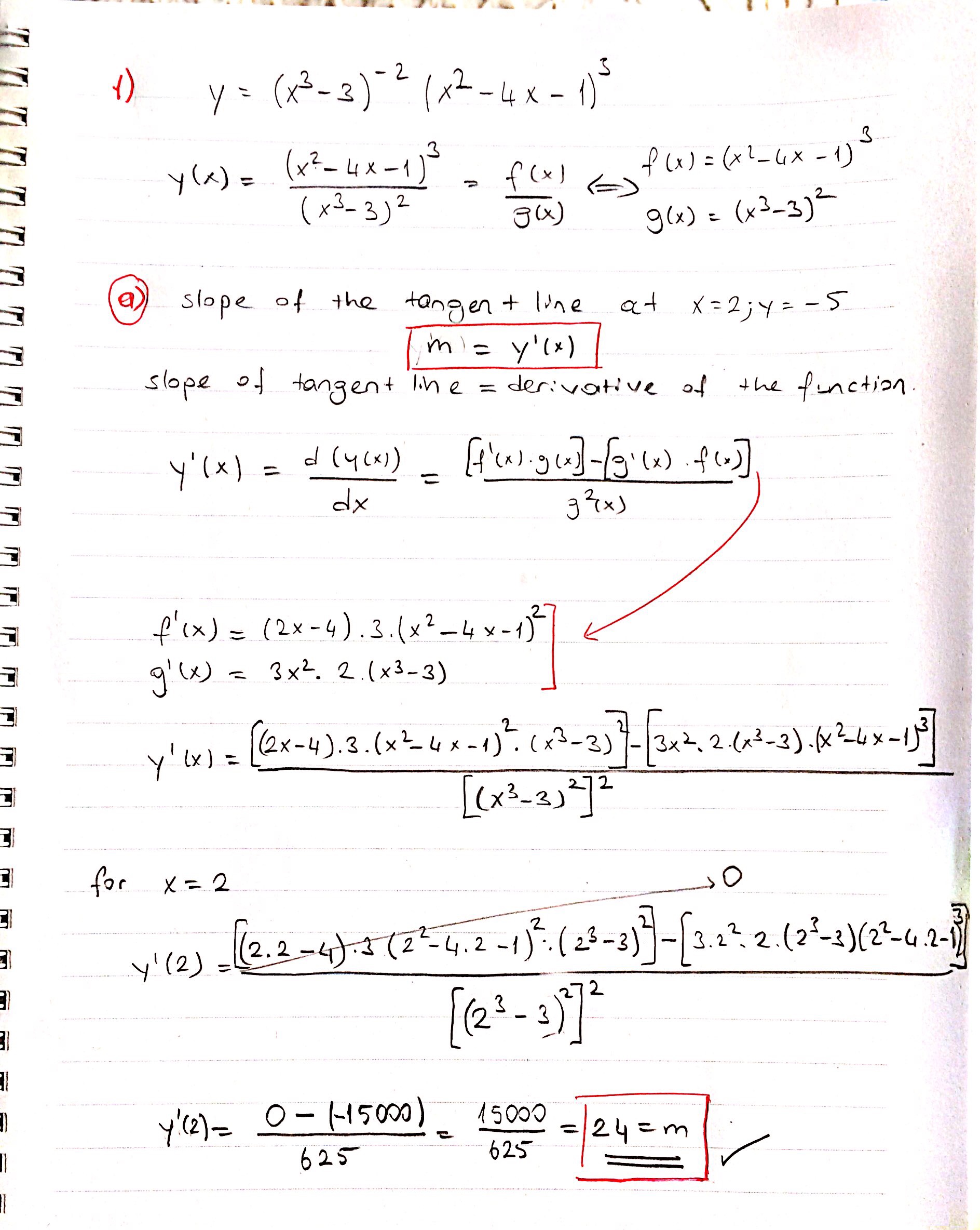 1. For the given function y= - a). (8 pts) Determine the slope of...