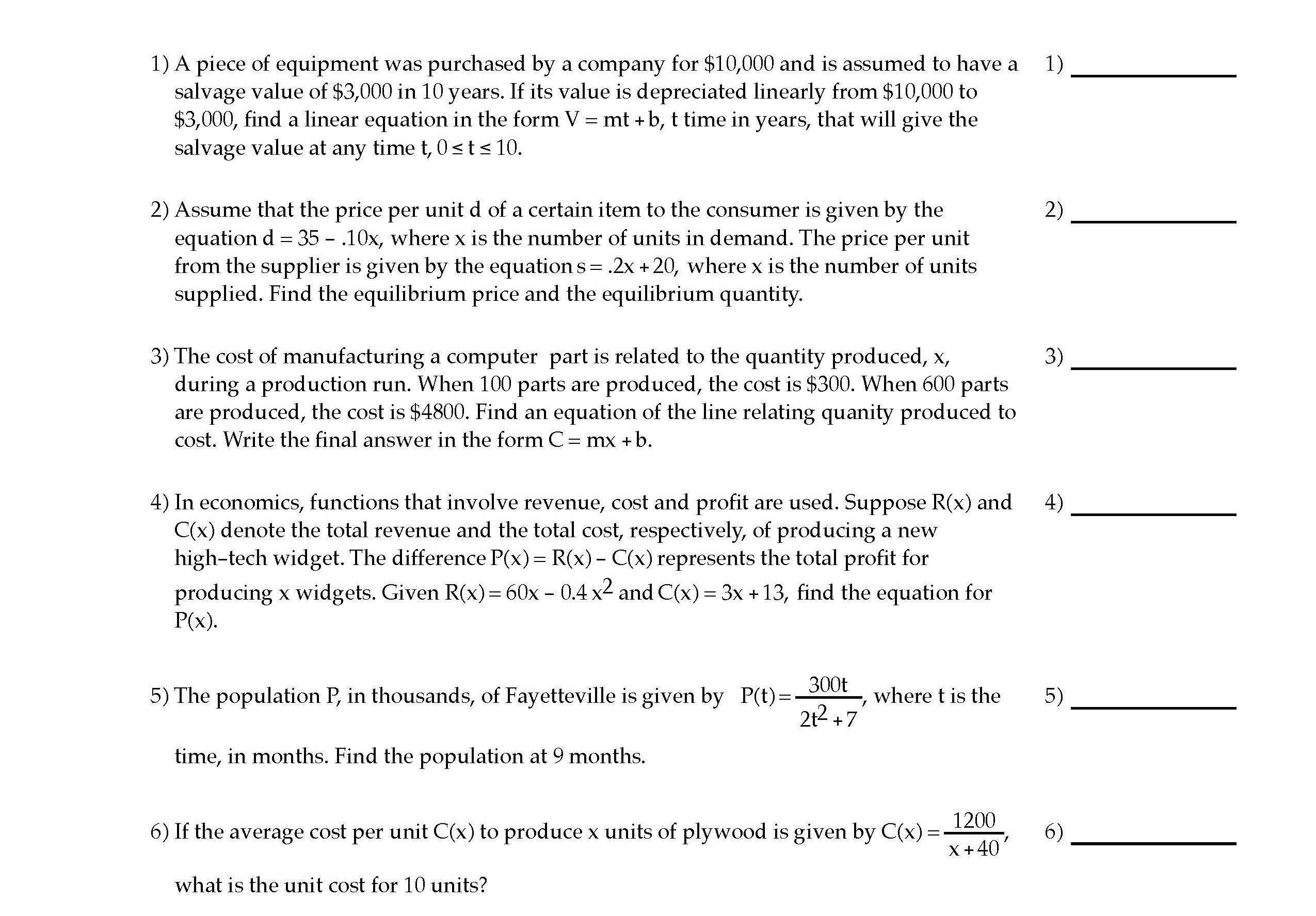 1) A piece of equipment was purchased by a company for $10,000 and ...