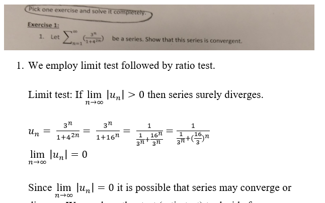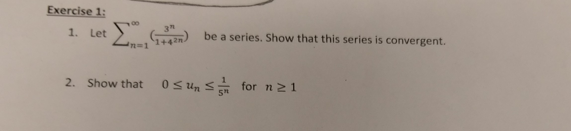 Exercise 1: 00 3n 1. Let ( 1+4 2n ) be a series. Show that t...